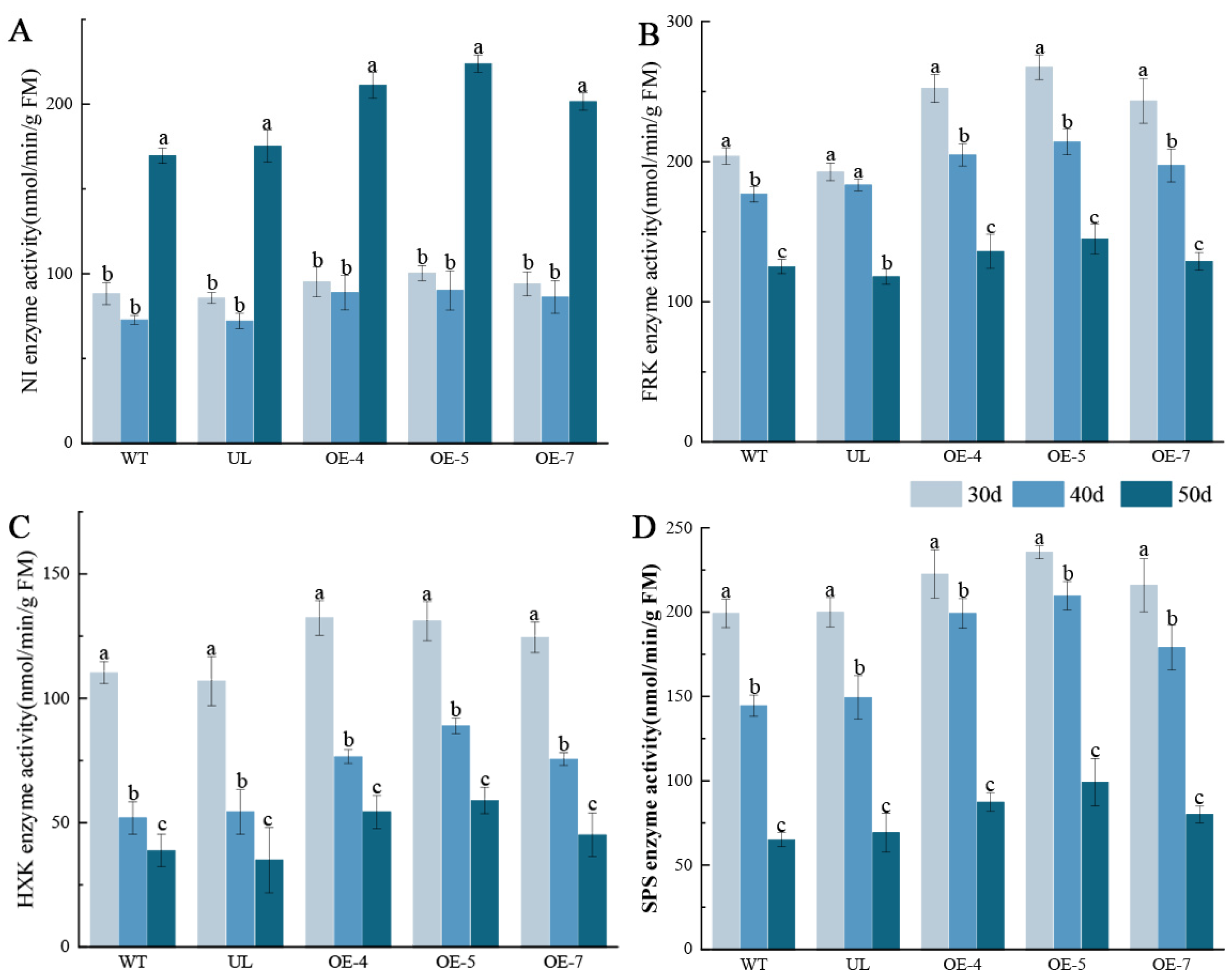 3.6. Functional Validation of RiPFK2 in Enhancing Soluble Sugar Content in Raspberry Fruits