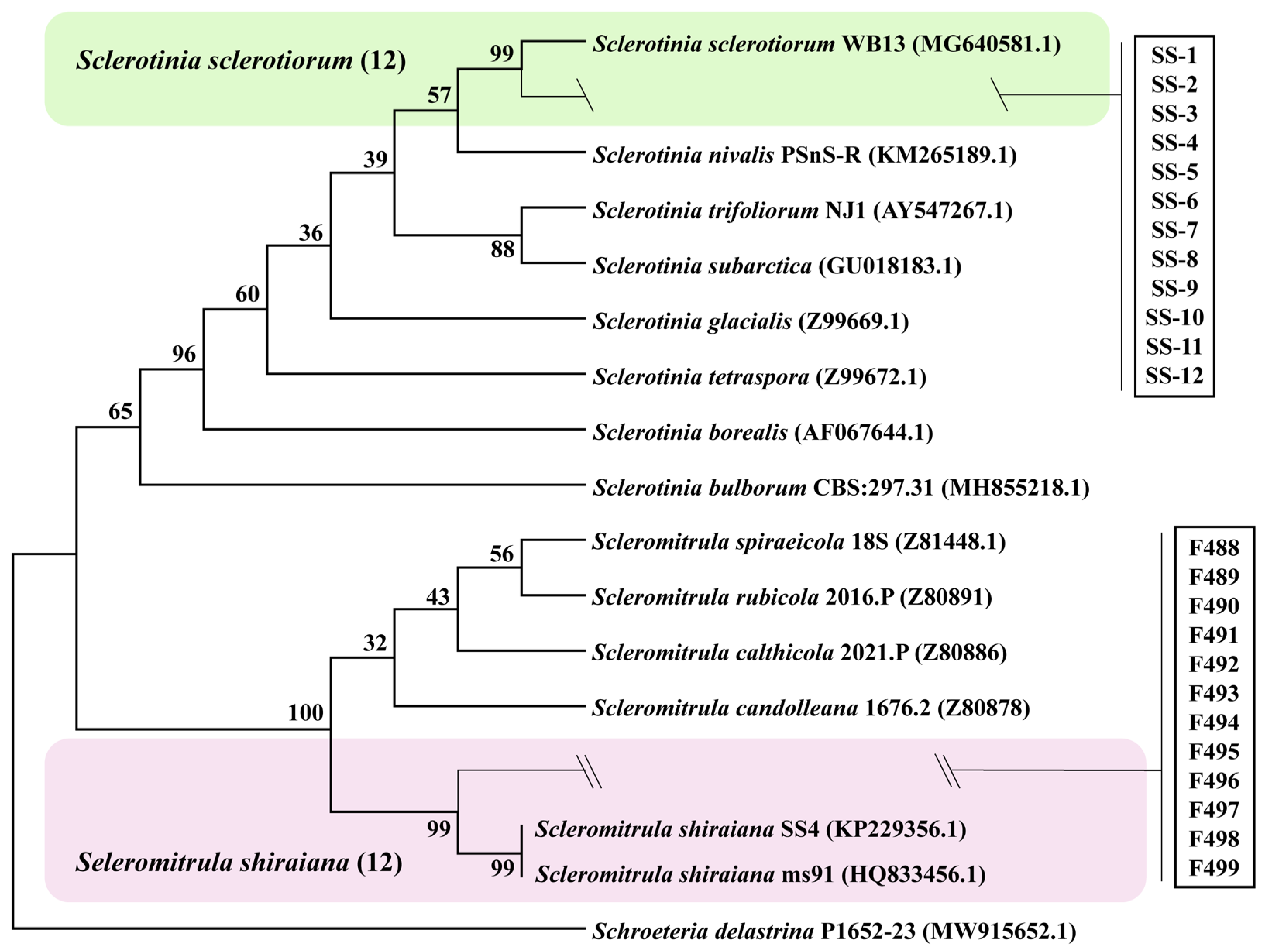 - Zhu, Z.X.; Yu, C.; Dong, Z.X.; Mo, R.L.; Zhang, C.; Liu, X.X.; Zuo, Y.Y.; Li, Y.; Deng, W.; Hu, X.M. Phylogeny and fungal community structures of helotiales associated with sclerotial disease of mulberry fruits in China. Plant Dis. 2024, 108, 502–512. [Google Scholar] [CrossRef]