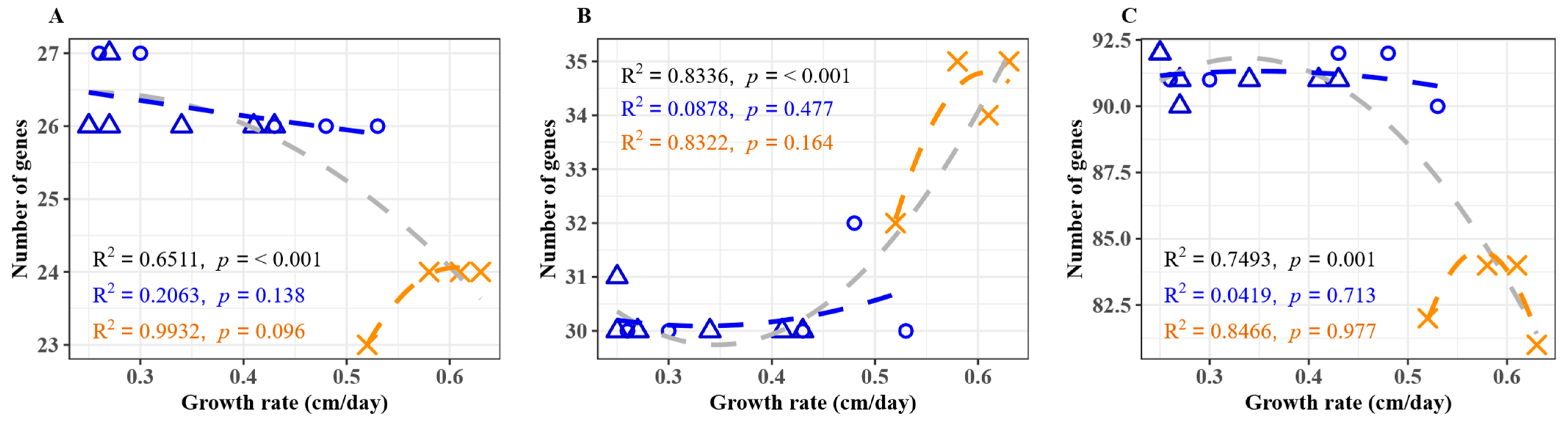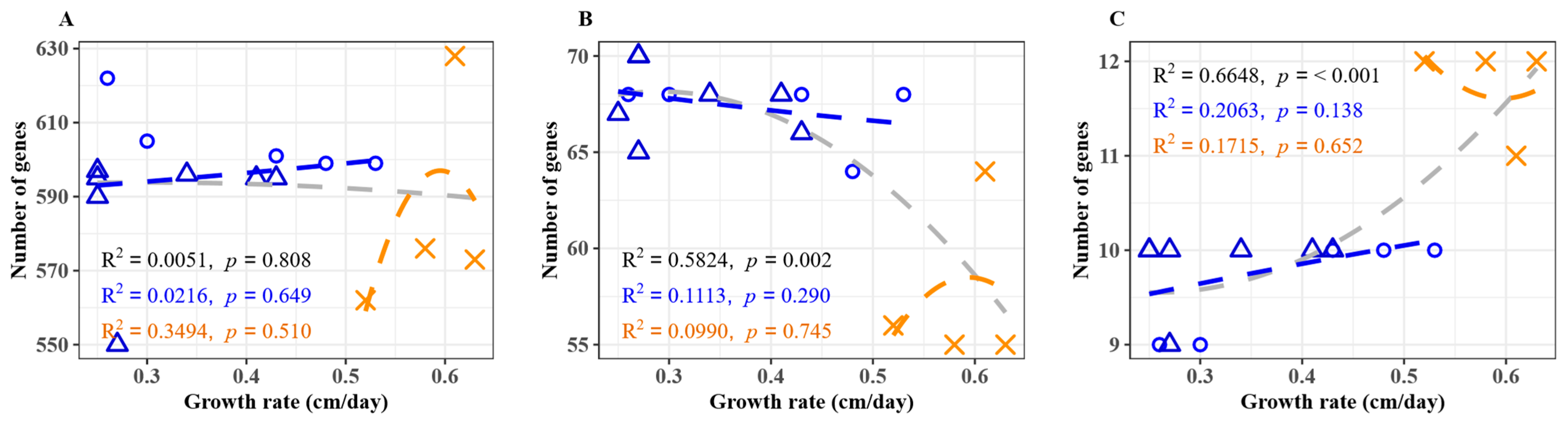 3.2. Growth Rate and Relationship to Gene Number