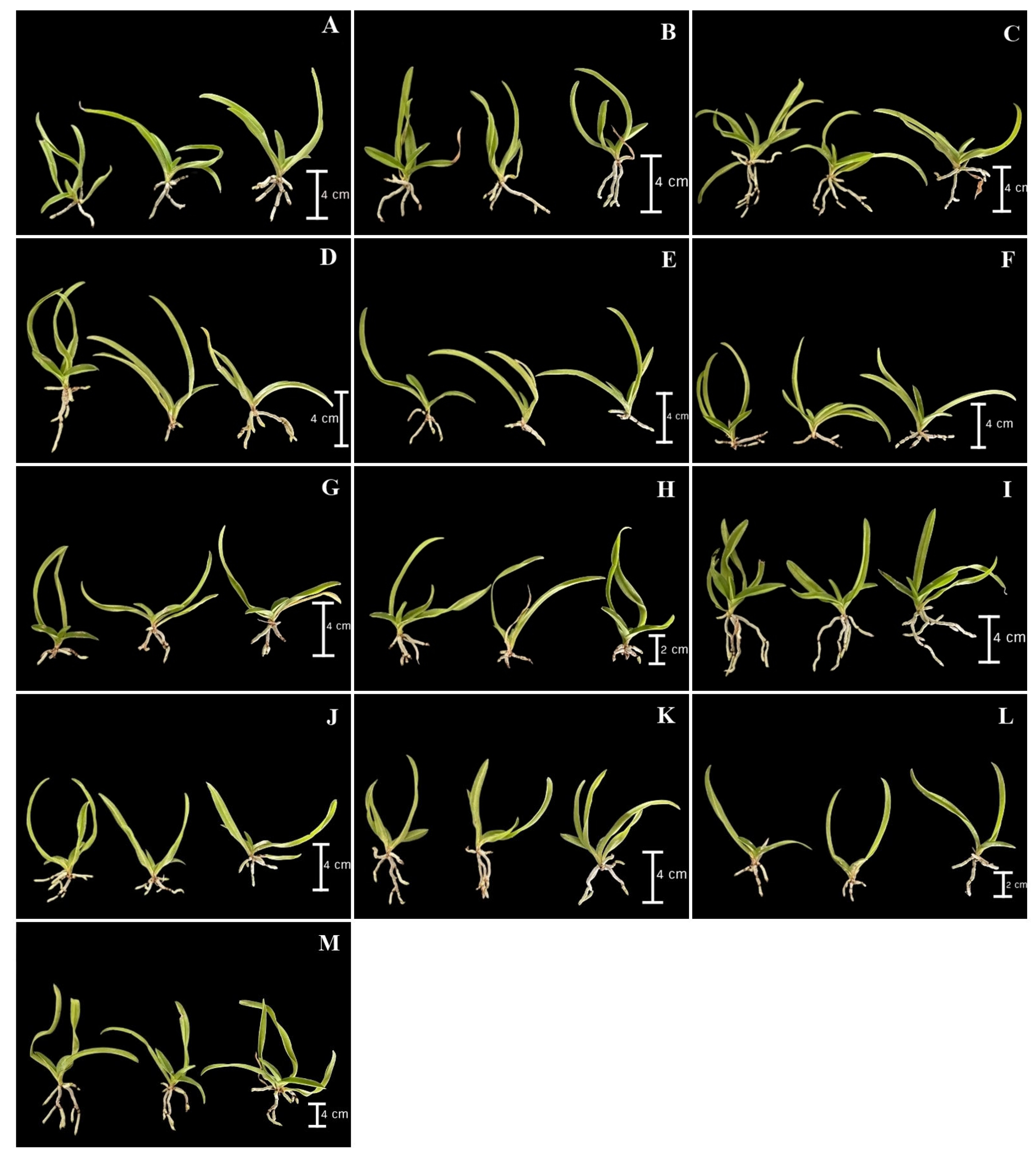 | Factors | Number of Leaves | Plant Height (cm) | Number of Roots | Root Length (cm) | |