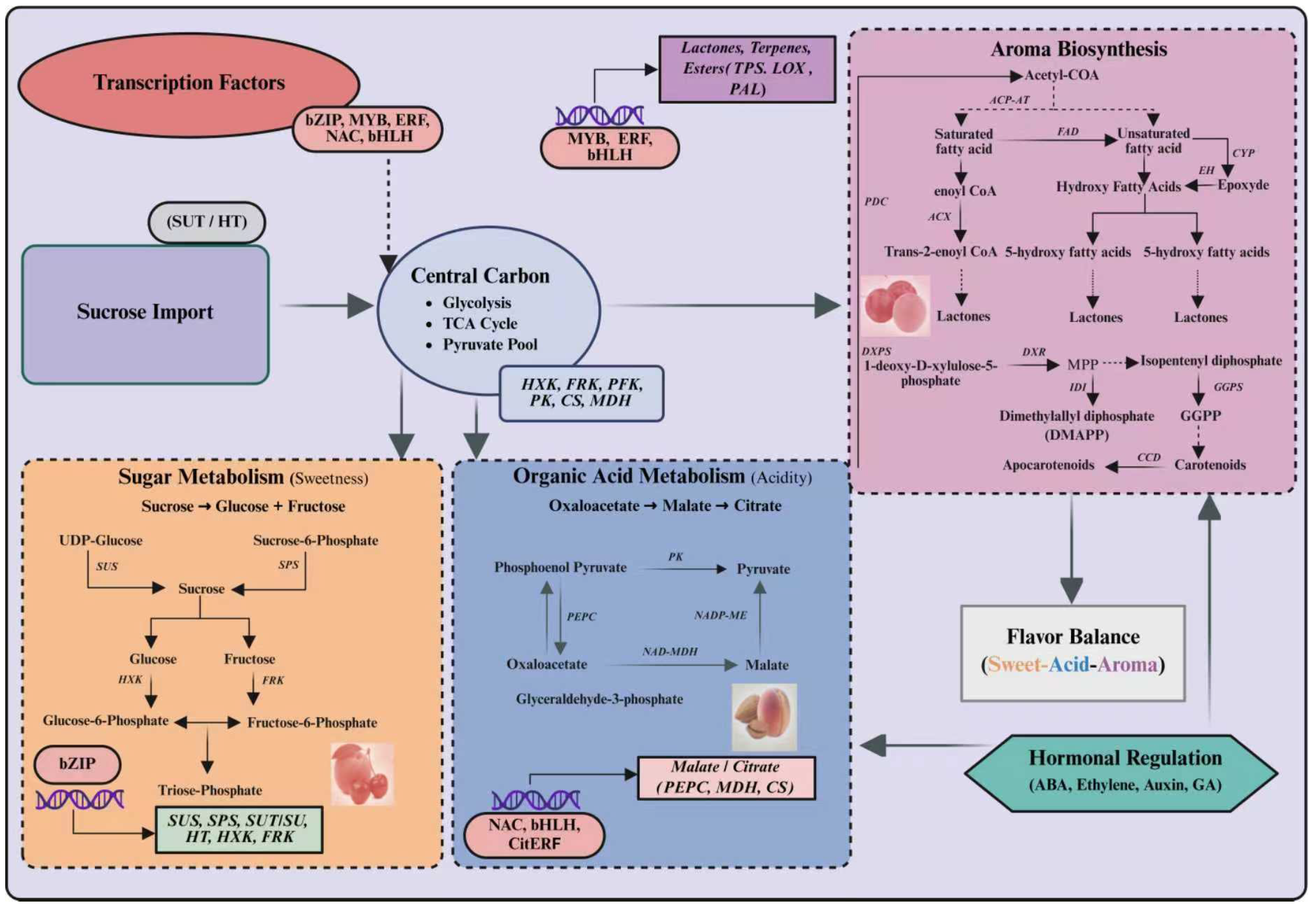5. Integration of Sugar, Acid, and Aroma Pathways in Stone Fruit Flavor Quality