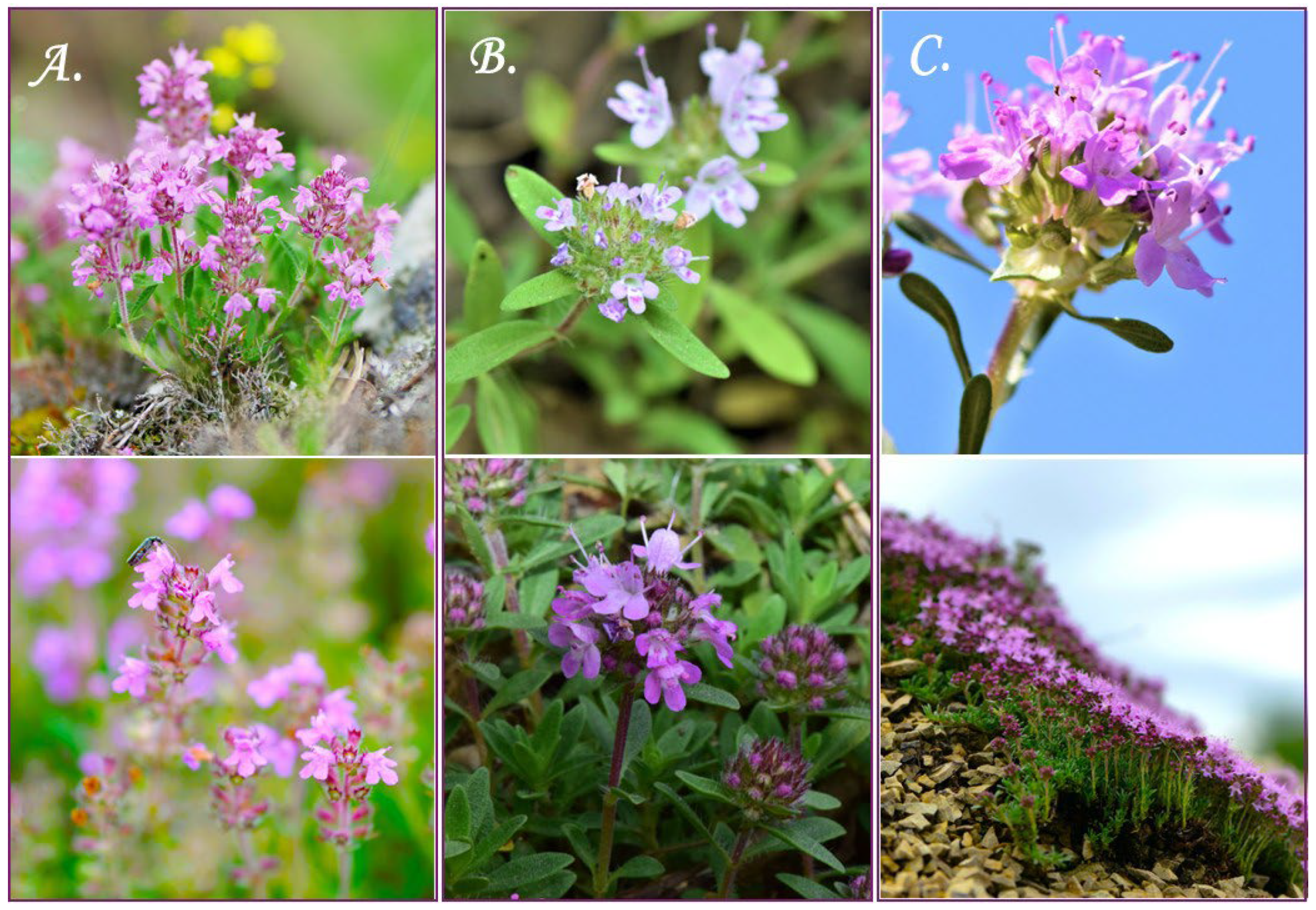 Thymus taxa are illustrated by representative flowering individuals and habitats presented in