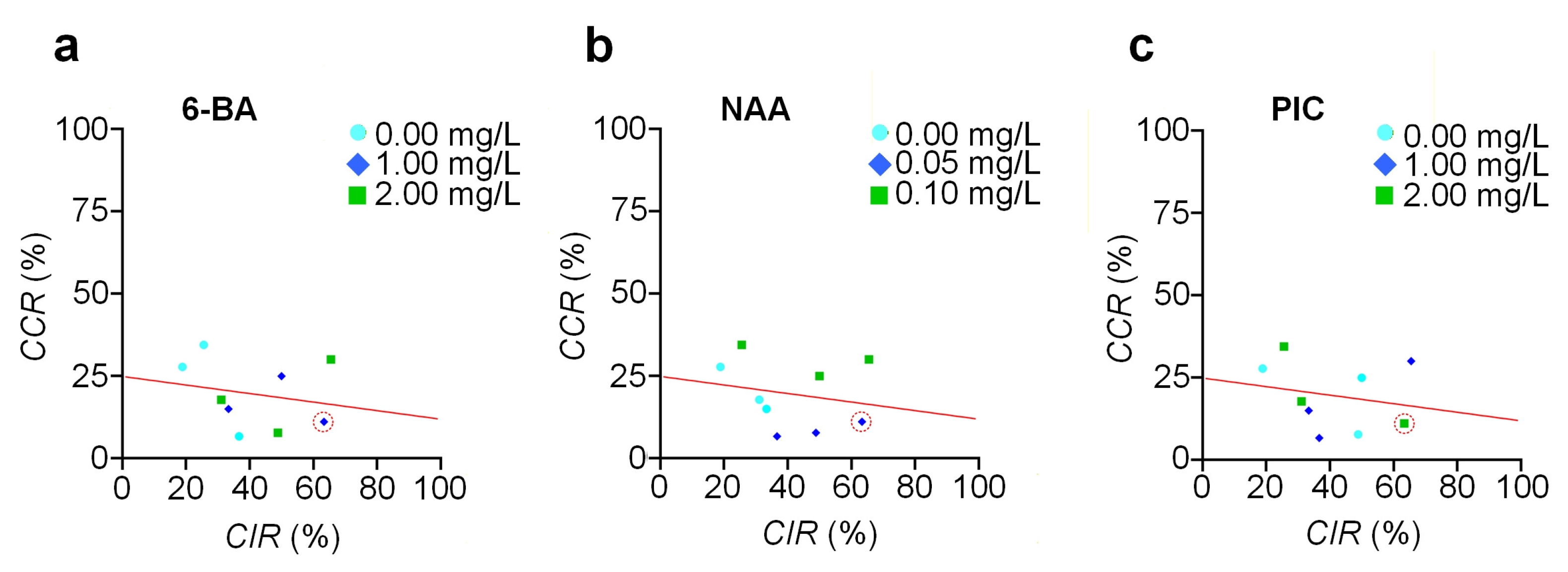 | Medium ID | Plant Growth Regulator (mg/L) | ||