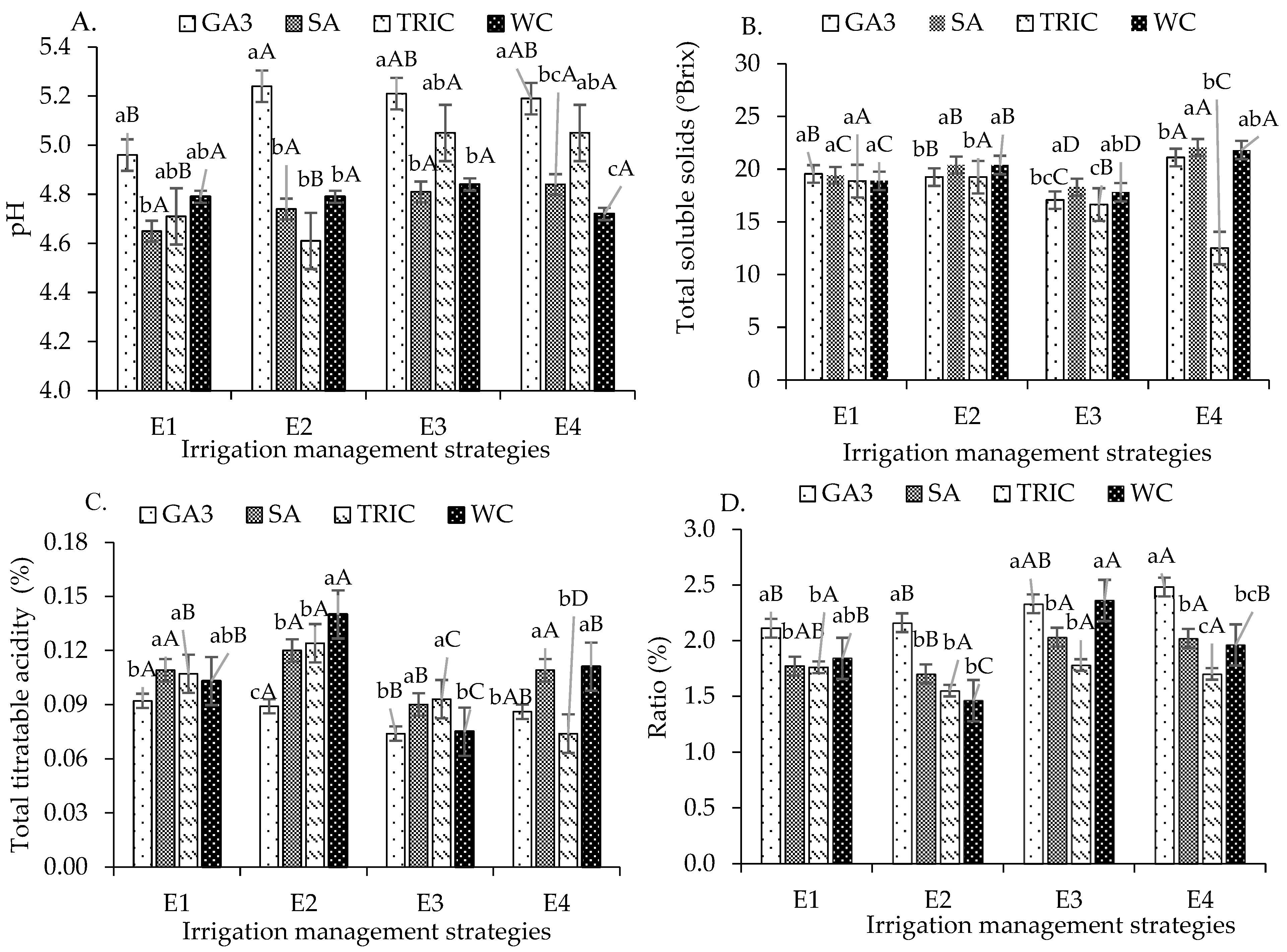 - Chen, F.; Cui, N.; Jiang, S.; Li, H.; Wang, Y.; Gong, D.; Hu, X.; Zhao, L.; Liu, C.; Qiu, R. Effects of water deficit at different growth stages under drip irrigation on fruit quality of citrus in the humid areas of South China. Agric. Water Manag. 2022, 262, 107407. [Google Scholar] [CrossRef]
