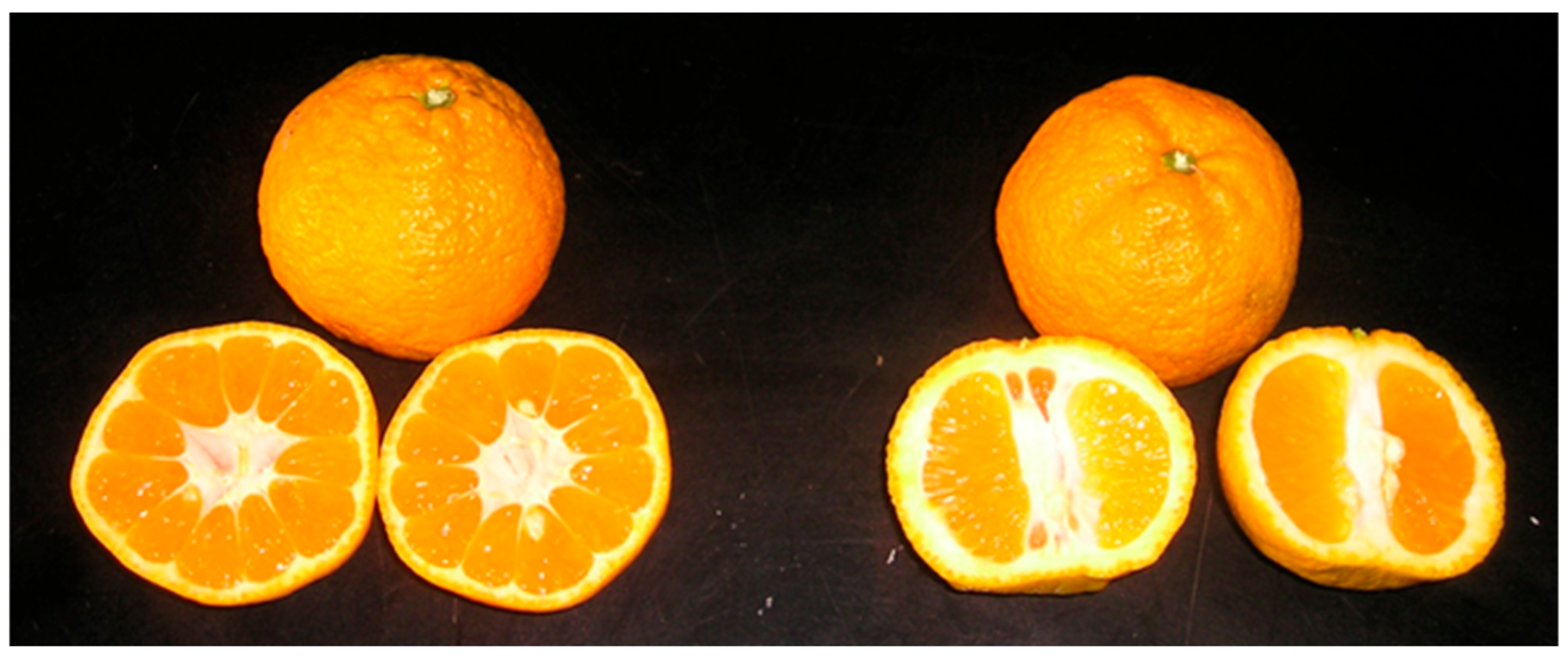 - Goldenberg, L.; Yaniv, Y.; Porat, R.; Carmi, N. Mandarin Fruit Quality: A Review. J. Sci. Food Agric. 2018, 98, 18–26. [Google Scholar] [CrossRef]