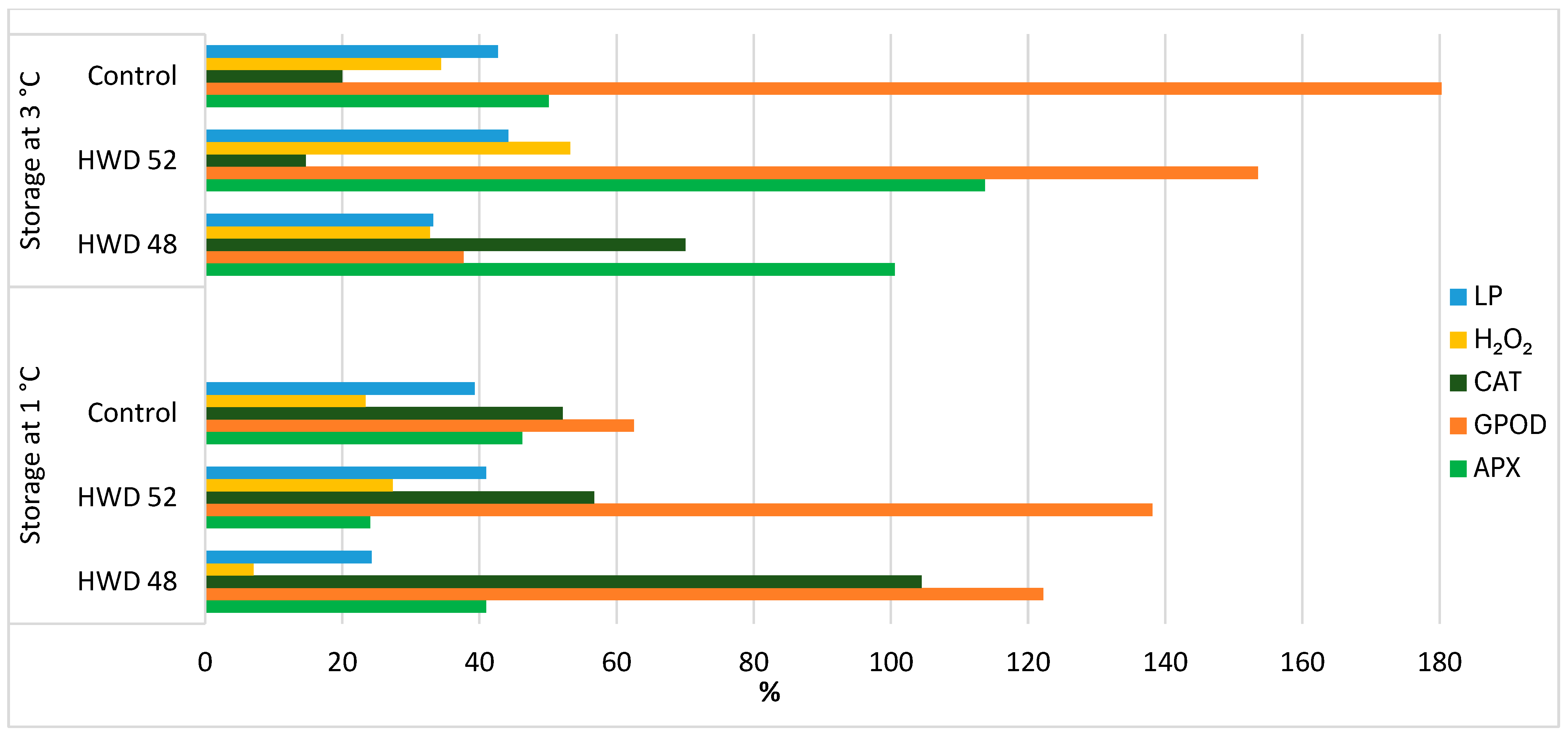 - Rivera, F.; Sotelo, Z.G.; de León, F.D.; Bosquez, E.; Dominguez, J.; Chavez, S.; Cajustes, J.; Perez-flores, J.L. Lipoperoxidation and Antioxidant Enzymes of Refrigerated Persian Limes (Cztrus latzfolza Tanaka) as Influenced by a Prestorage Hot Treatment. J. Food Biochem. 2004, 28, 305–317. [Google Scholar] [CrossRef]