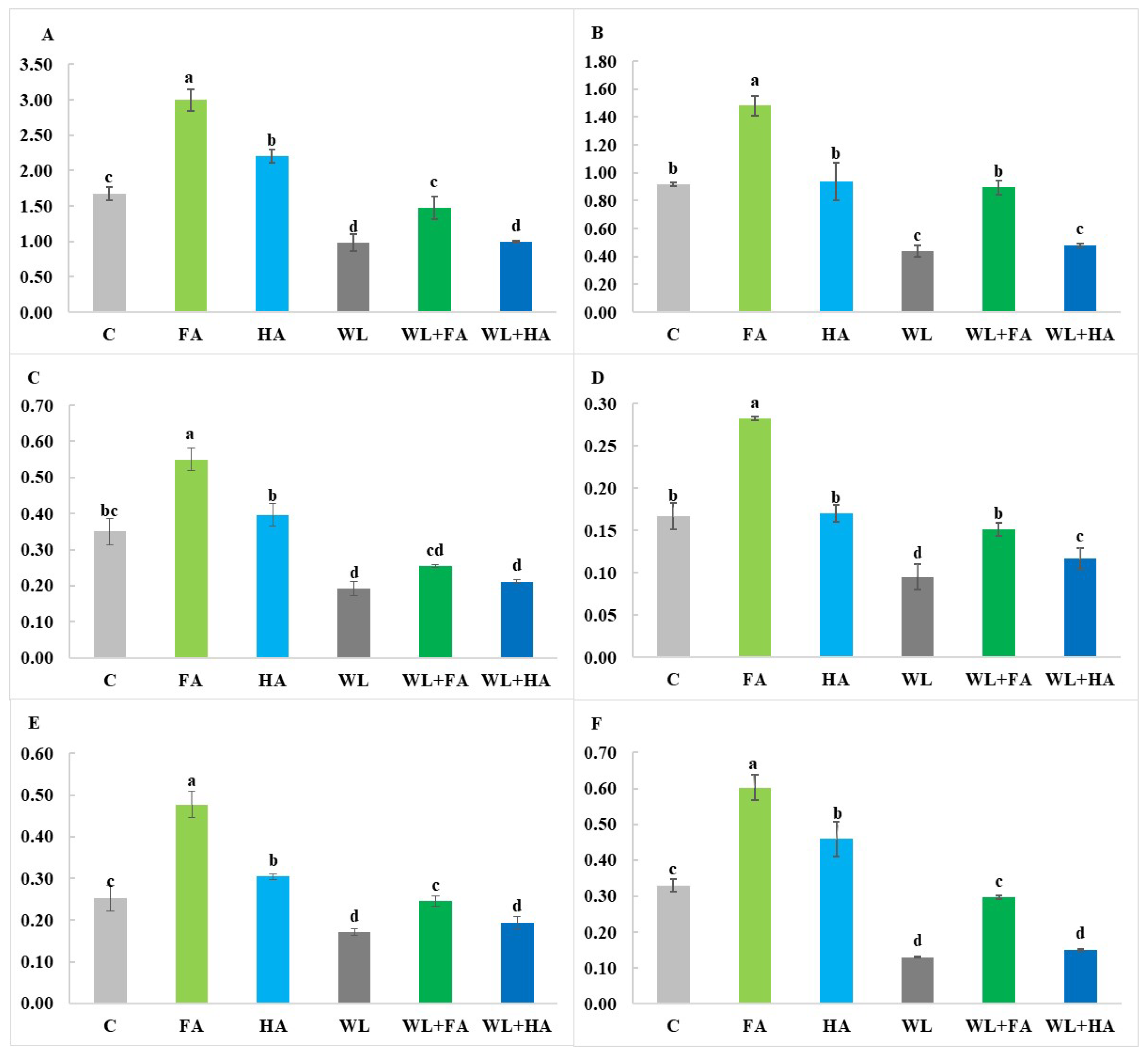 | WL + FA | 186.51 ± 3.96 ab | 1870.18 ± 50.99 c | 366.99 ± 16.19 b |