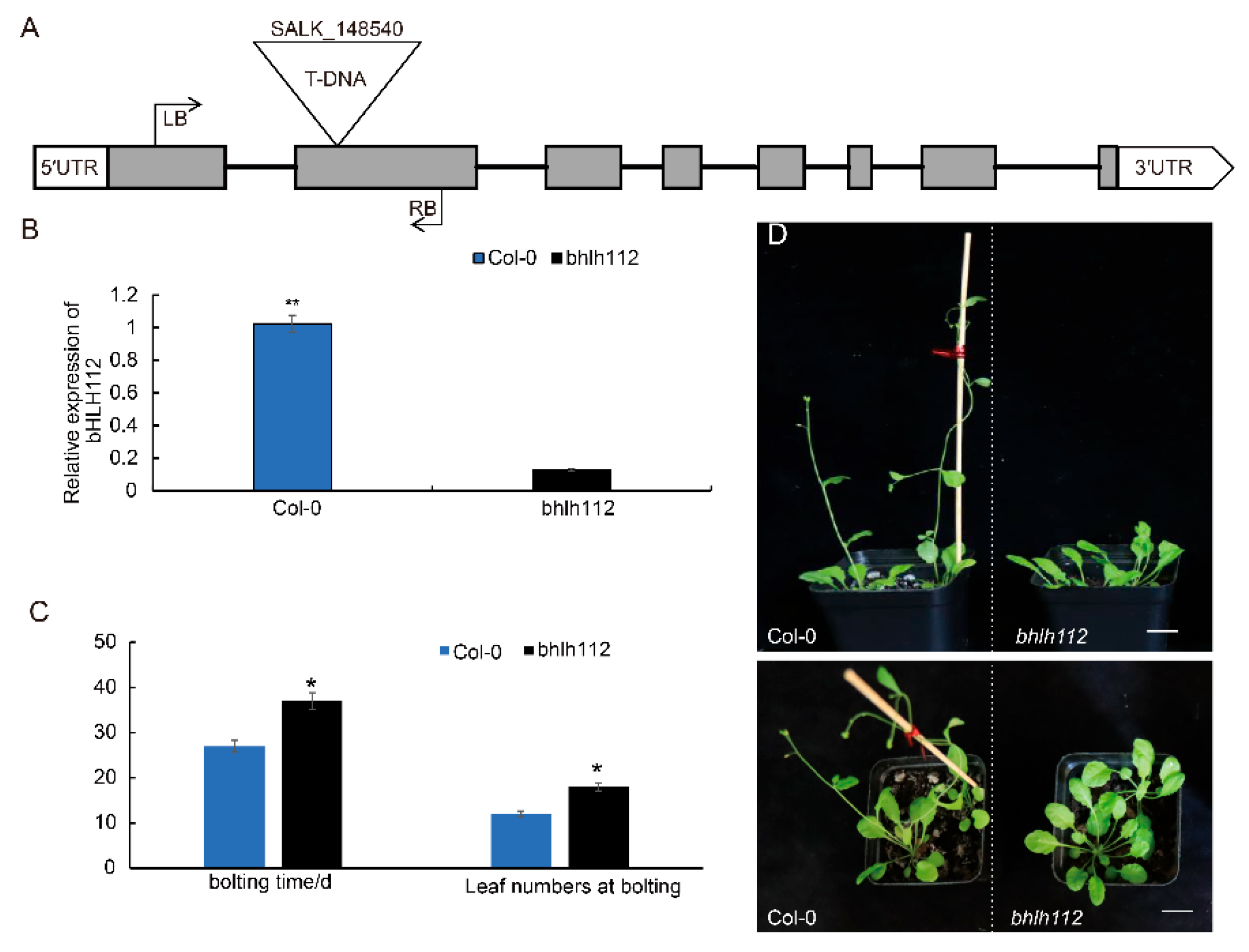 4.1. Involvement of CmbHLH112 in the Regulation of Flowering Time