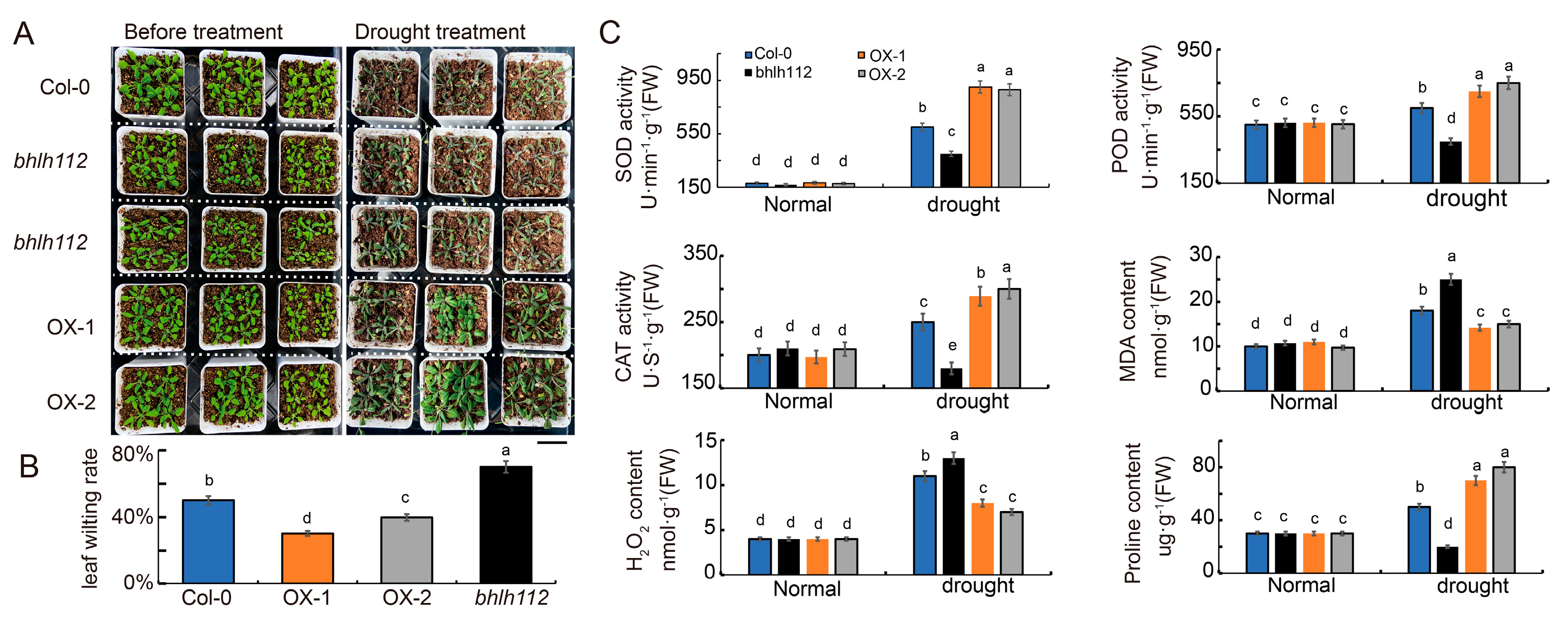 4.2. Involvement of CmbHLH112 in the Regulation of Drought Stress Tolerance