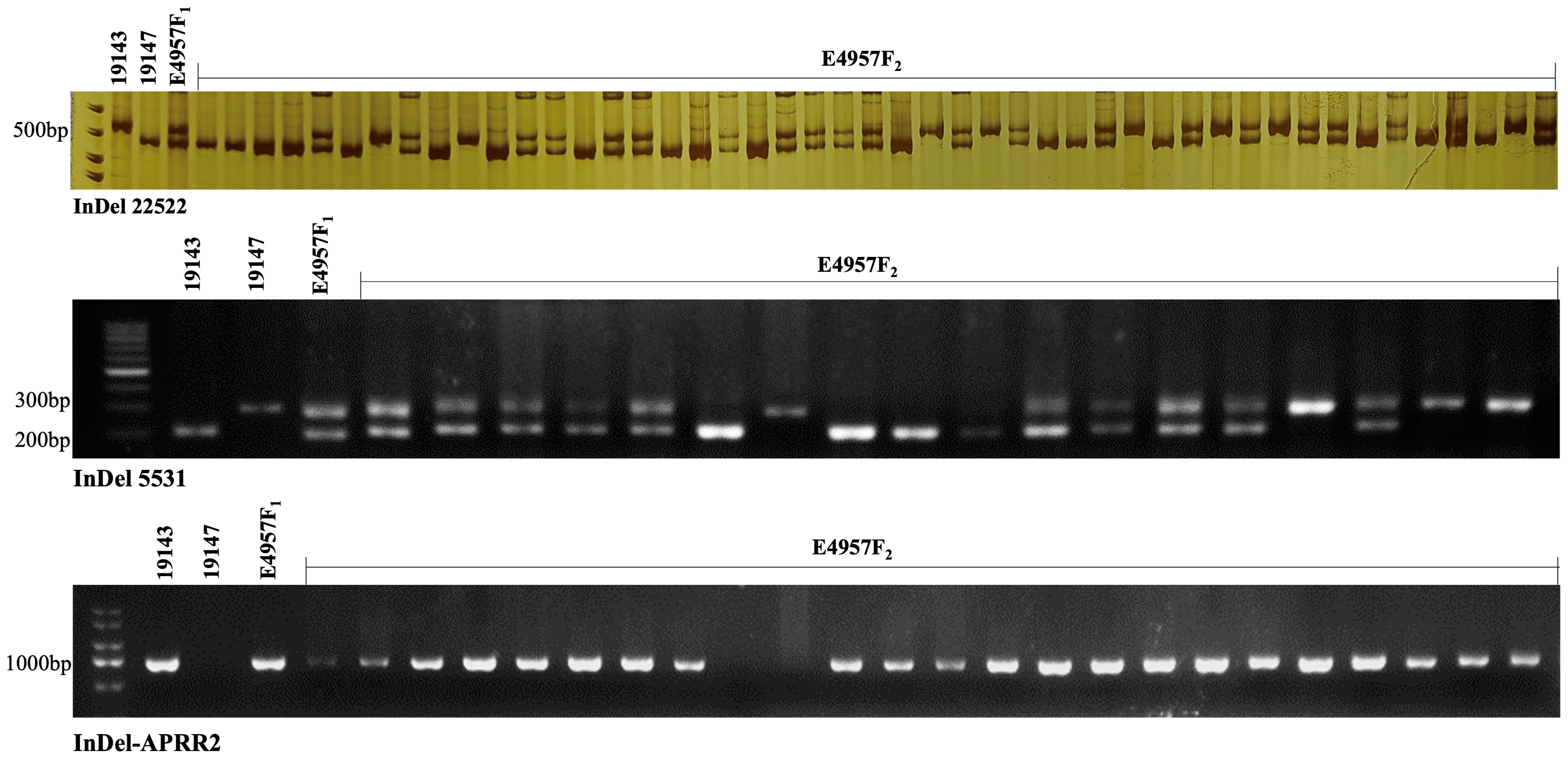 | InDel22522 | 22522-F2 | ACCGAGCCATTAGGACCTCTTGT | 469 bp | 440 bp | 469 bp |