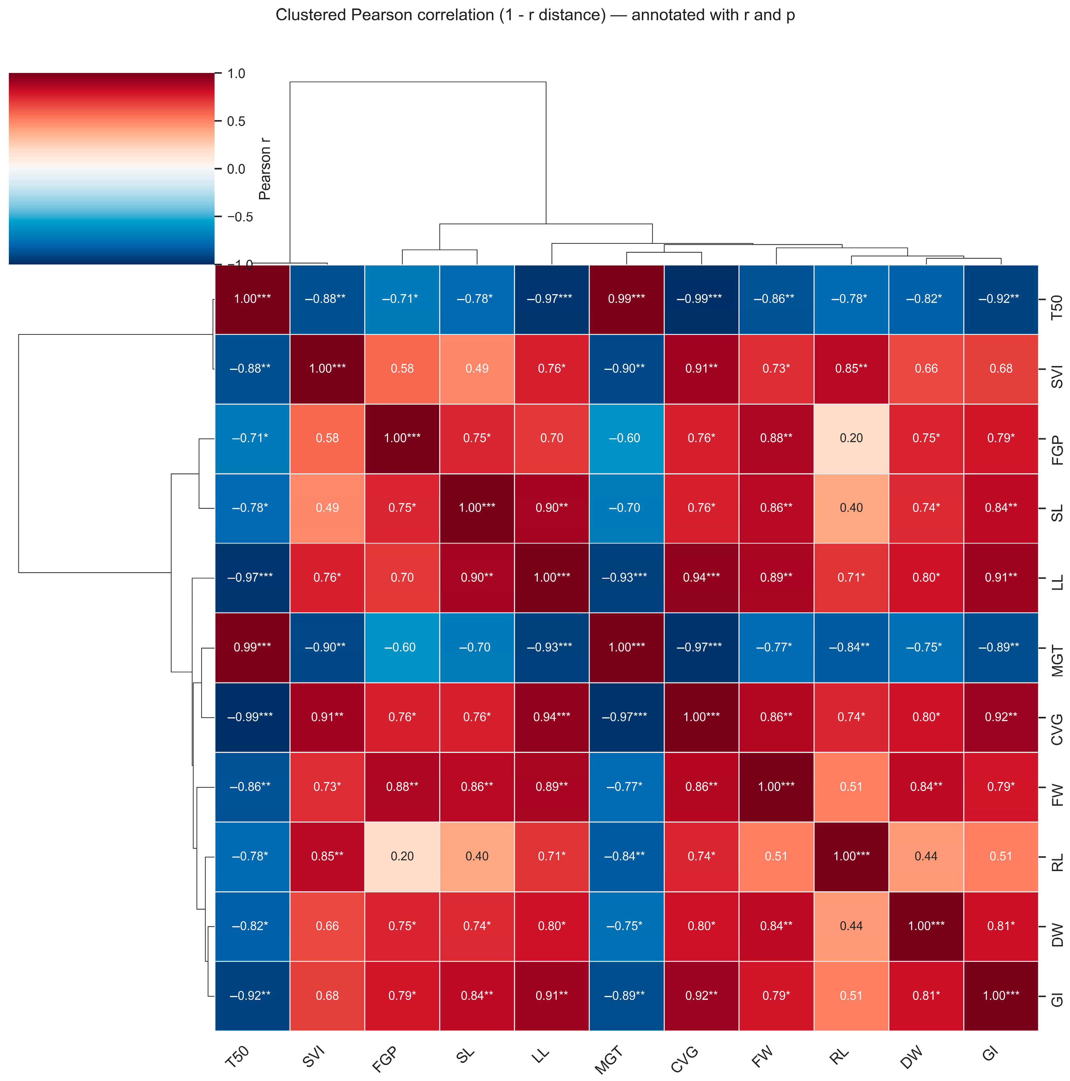 3.4. Correlation Analysis Between Germination and Seedling Traits