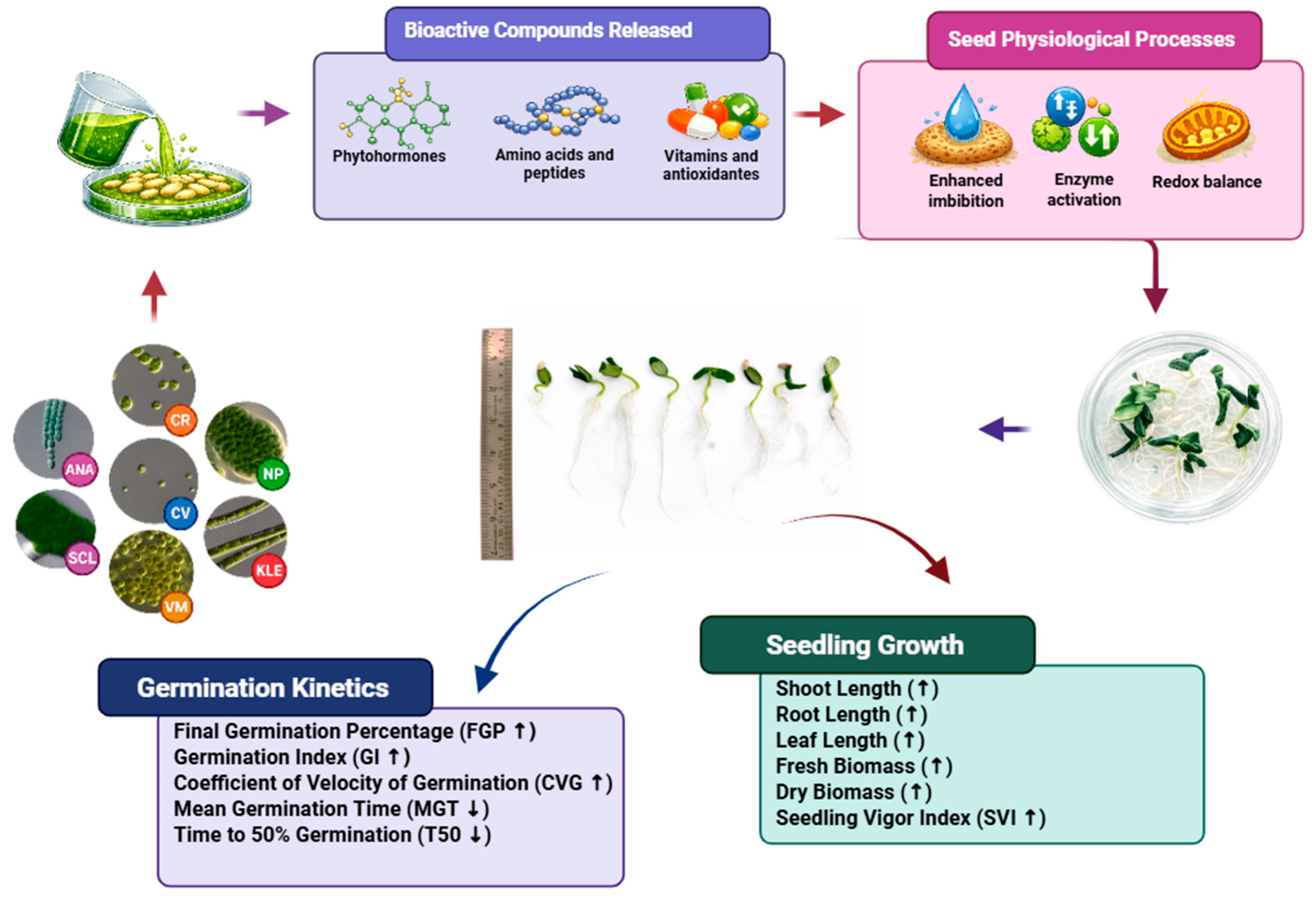 - Xie, R.; Dang, K.; Kan, S.; Sauve, J.; Johnson, R.; Clay, M.; Jessup, R.; Qin, H. Microalgae as biostimulants for seed germination. Proc. Int. Plant Propagators’ Soc. 2022, 72, 119–126. Available online: https://ipps.org/wp-content/uploads/2025/05/3l_sr_xie_2022.pdf (accessed on 25 March 2026).