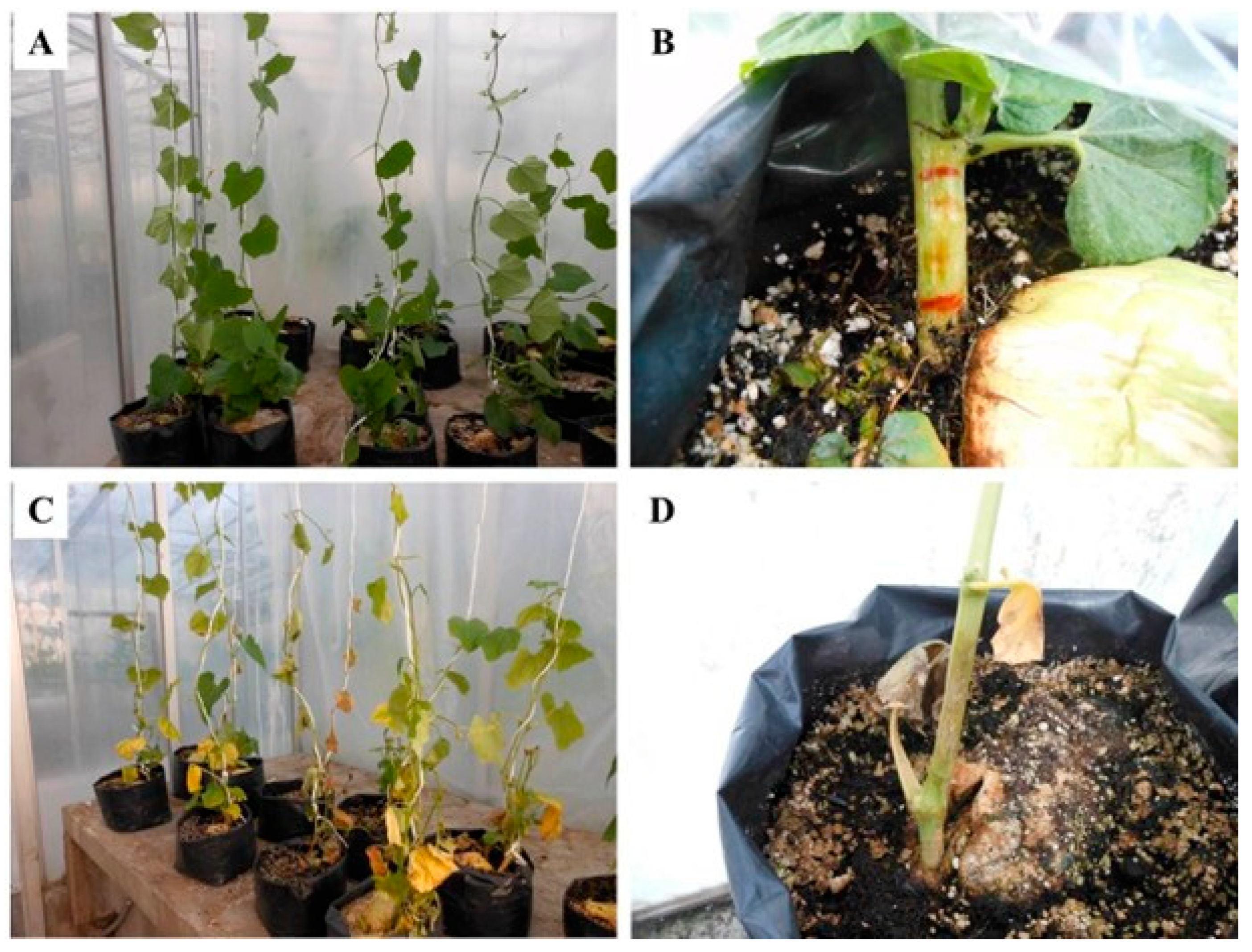 - Olguín Hernández, G.; Valdovinos Ponce, G.; Cadena Íñiguez, J.; Arévalo Galarza, M.d.L. Etiology of Chayote (Sechium edule) Wilting Plants in the State of Veracruz. Rev. Mex. De Fitopatol. 2013, 31, 161–169. [Google Scholar]