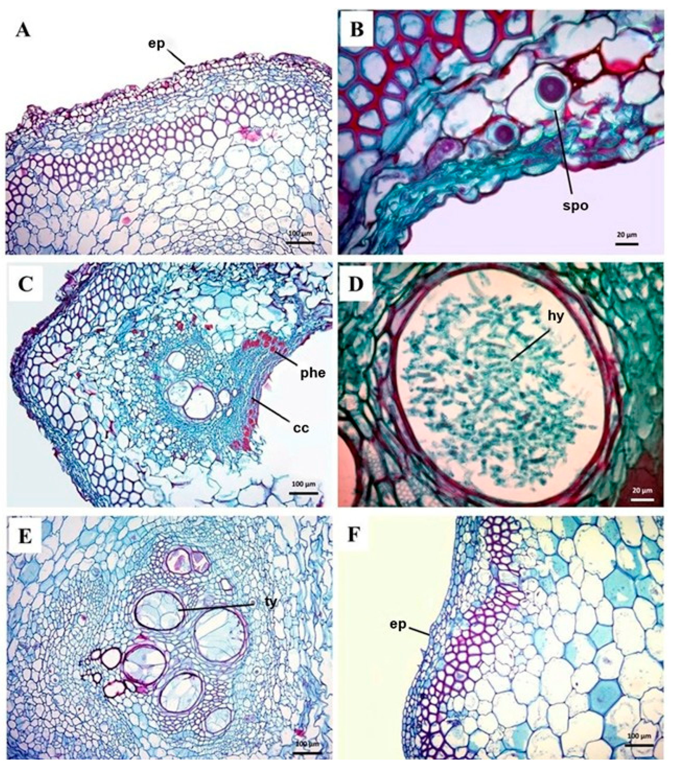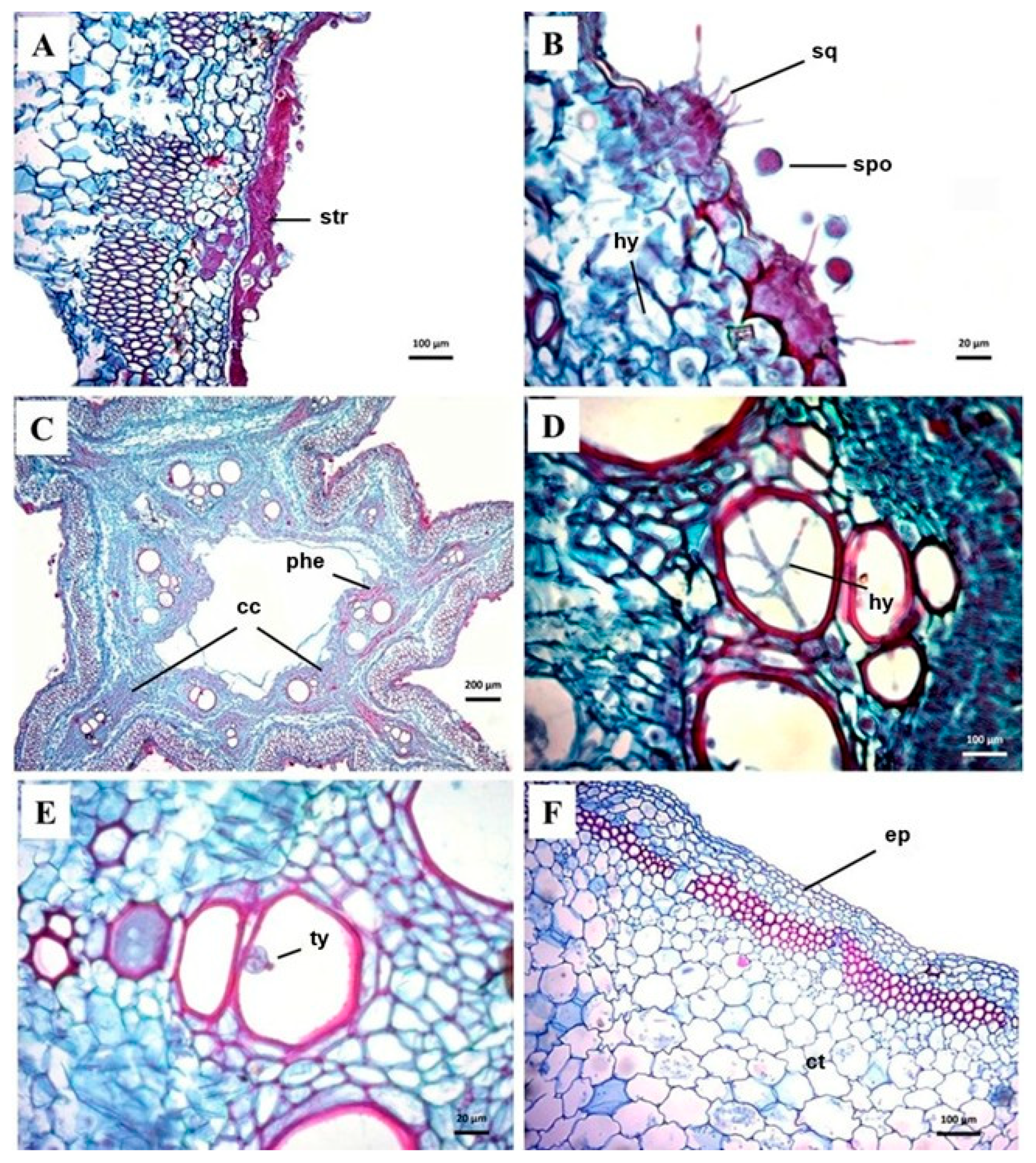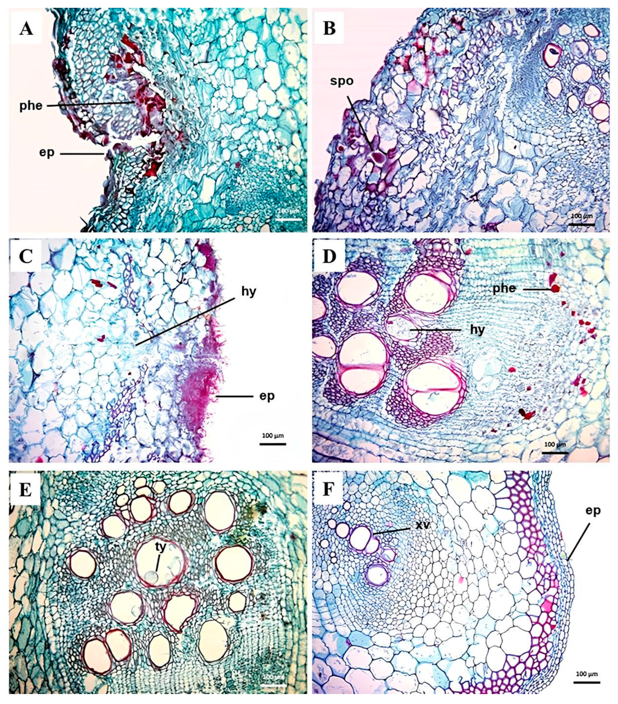 - Yadeta, K.; Thomma, B. The Xylem as Battleground for Plant Hosts and Vascular Wilt Pathogens. Front. Plant Sci. 2013, 4, 97. [Google Scholar] [CrossRef]