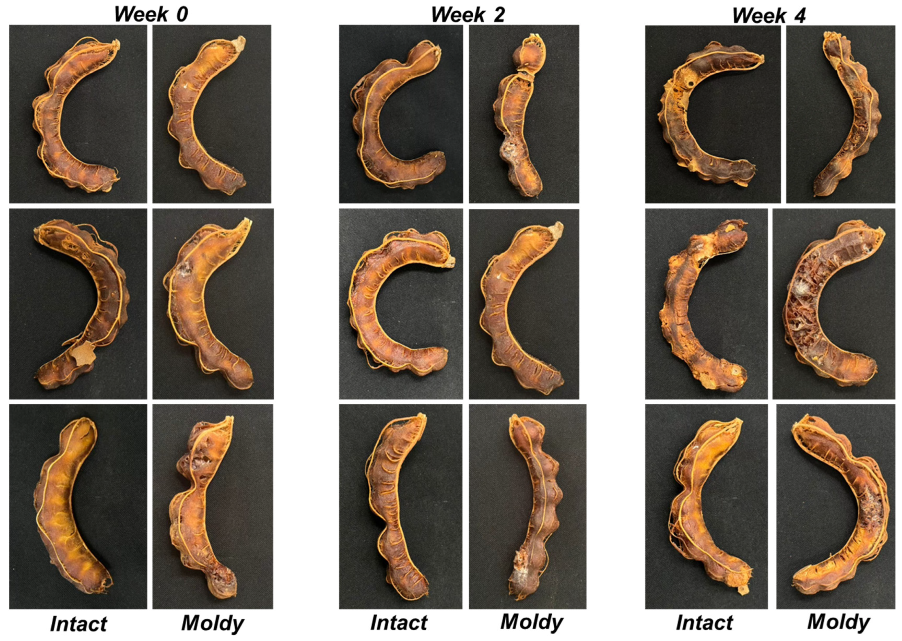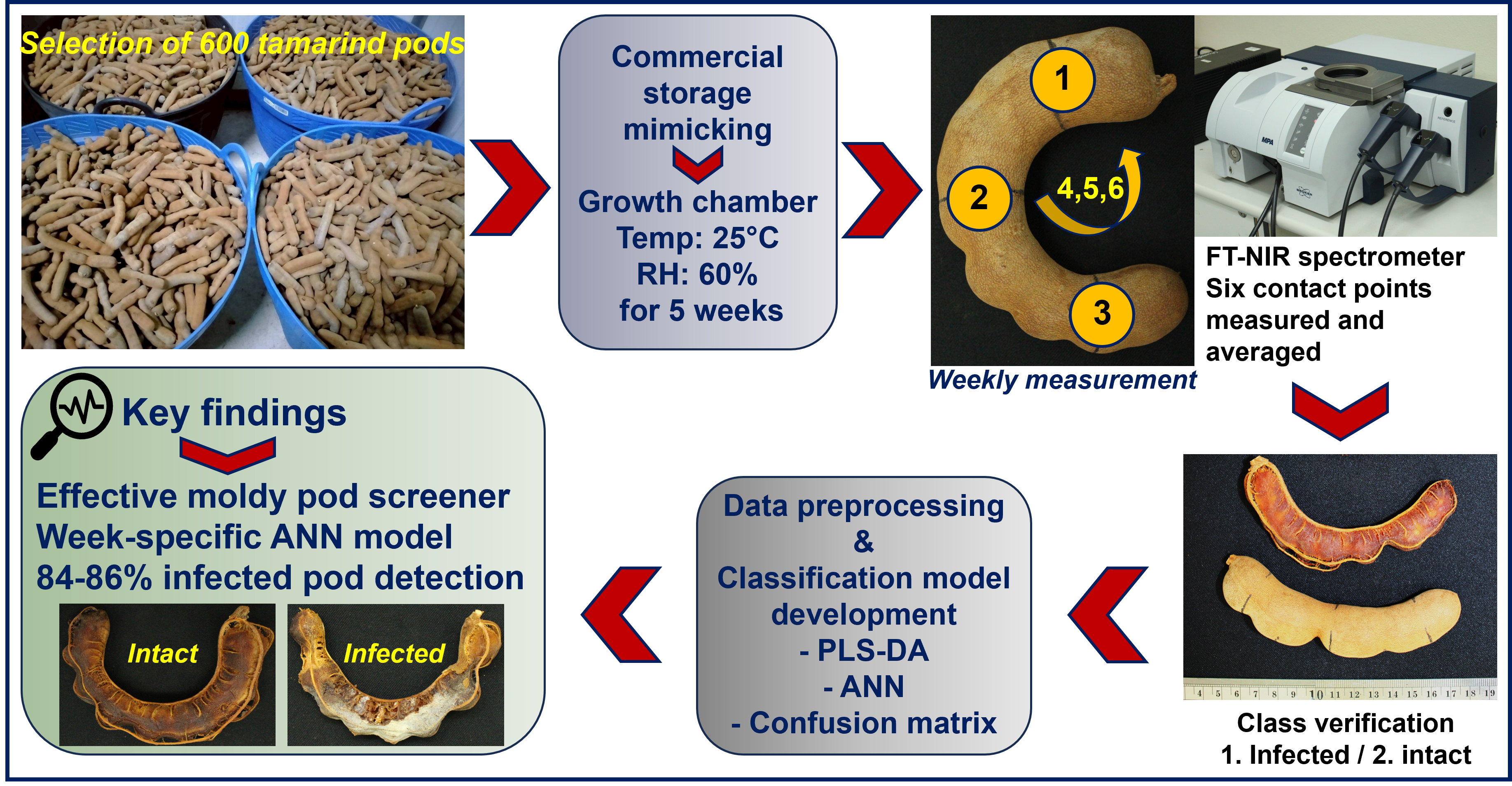 Ali, M.Z.; Seehanam, P.; Naksavi, D.; Maniwara, P. Mold Detection in Sweet Tamarind During Storage Performed by Near-Infrared Spectroscopy and Chemometrics. Horticulturae 2026, 12, 462. https://doi.org/10.3390/horticulturae12040462