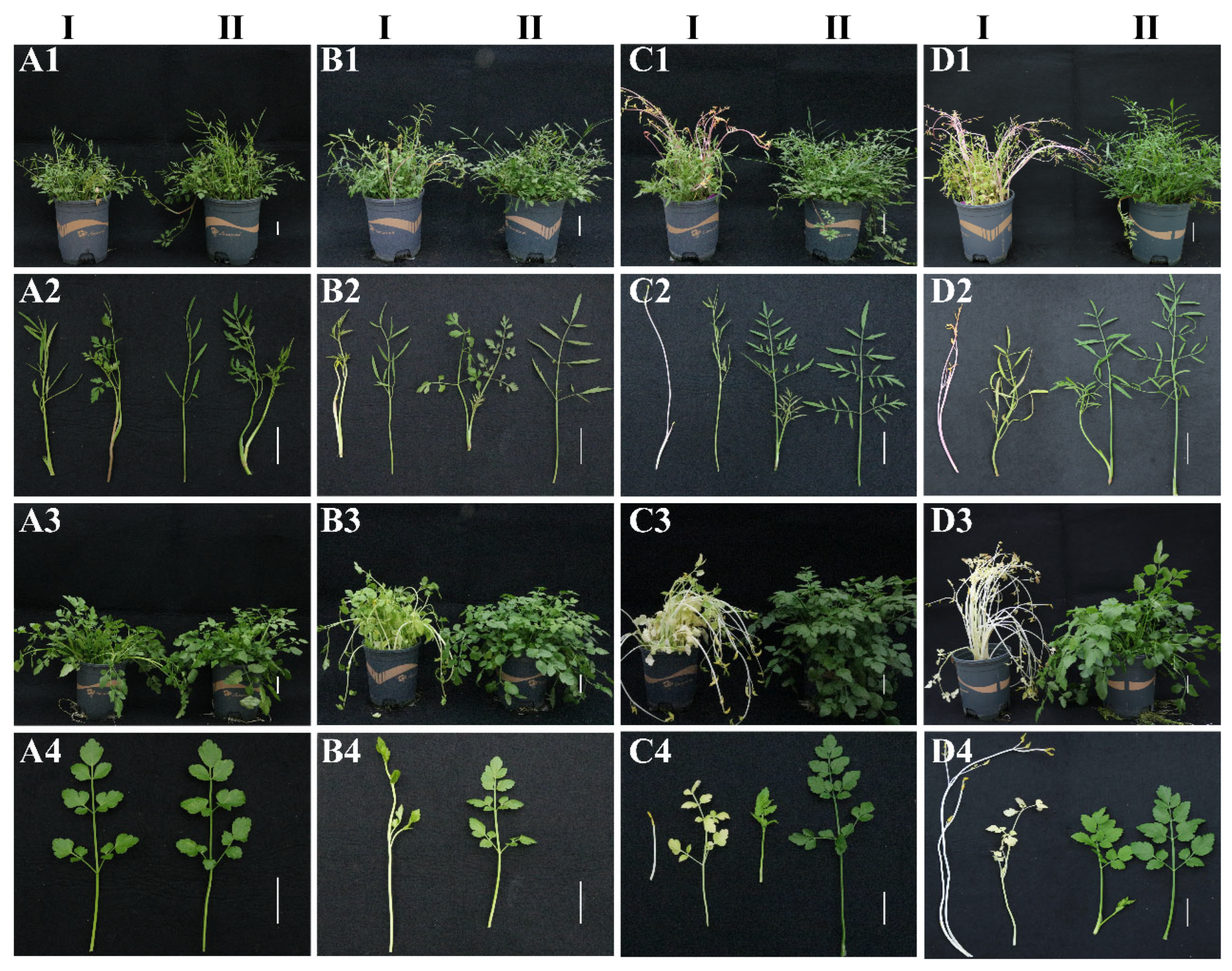 32] reported that under shading conditions, blackcurrant fruit maturation is delayed, fruit hardness increases, and ascorbic acid (AsA) content significantly decreases. In the present study, prolonged shading induced marked etiolation, leaf curling, and yellowing of petioles in water dropwort. These morphological changes are consistent with previous observations in celery, where that shading leads to yellowing, reduced stem thickness, and increased plant height [