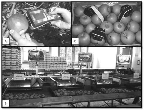 - Costa, G.; Noferini, M. Use of Nondestructive devices as a decision support system for fruit quality enhancement. Acta Hortic. 2013, 998, 103–115. [Google Scholar] [CrossRef]