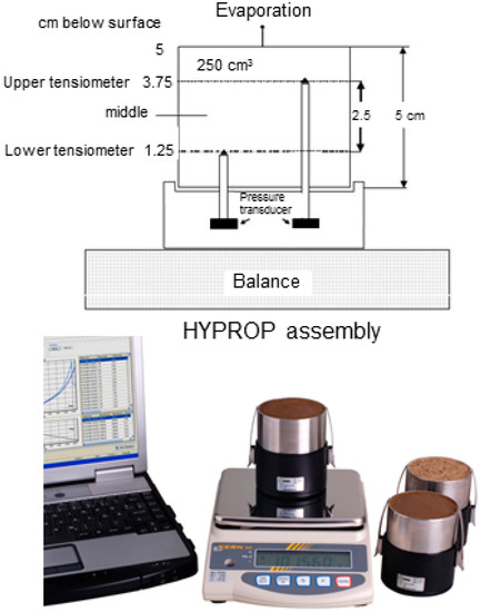 - UMS GmbH Munich, HYPROP©—Laboratory Evaporation Method for the Determination of pF-Curves and Unsaturated Conductivity. Available online: http://www.ums-muc.de/en/products/soil_laboratory.html (accessed on 29 August 2011).