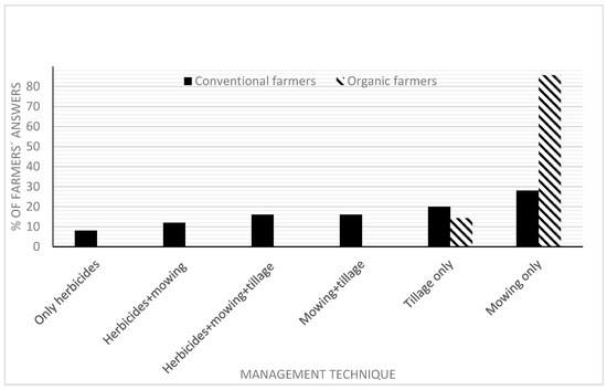 Ground vegetation management techniques among organic (n = 16) and conventional (n = 23) olive farmers in Messenia, Greece.