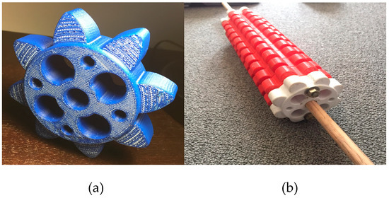 Figure 4. (a) Single rolling dibbler; (b) Whole flat dibble roller.