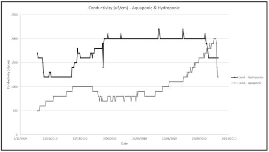 33], and it is noted that aquaponic systems contain lower percentages of ionized or “charged” nutrients (the only nutrients that will register using conductivity as a measure) [