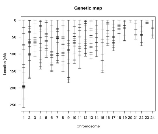 - Broman, K.W.; Wu, H.; Sen, Ś.; Churchill, G.A. R/qtl: QTL mapping in experimental crosses. Bioinformatics 2003, 19, 889–890. [Google Scholar] [CrossRef]