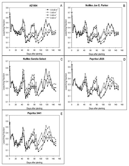 - Ben-Gal, A.; Ityel, E.; Dudley, L.; Cohen, S.; Yermiyahu, U.; Presnov, E.; Zigmond, L.; Shani, U. Effect of irrigation water salinity on transpiration and on leaching requirements: A case study for bell peppers. Agric. Water Manag. 2008, 95, 587–597. [Google Scholar] [CrossRef]