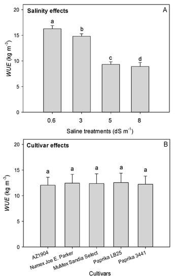 - Baath, G.S.; Shukla, M.K.; Bosland, P.W.; Steiner, R.L.; Walker, S.J. Irrigation water salinity influences at various growth stages of Capsicum annuum. Agric. Water Manag. 2017, 179, 246–253. [Google Scholar] [CrossRef]