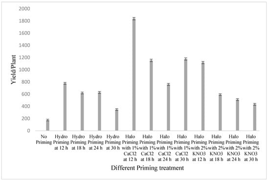 Yield per plant of Yard-long bean as influenced by different seed priming treatments.