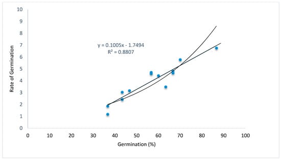 Relationship between the speed of germination and germination (%) of the Yard-long bean.