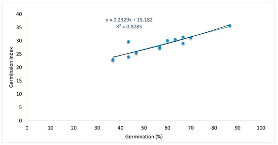 Relationship between the germination index and germination (%) of the Yard-long bean.