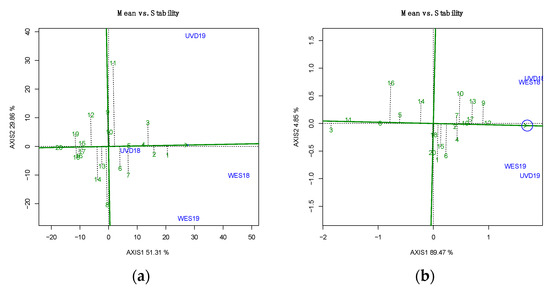 - Yan, W.; Hunt, L.; Sheng, Q.; Szlavnics, Z. Cultivar evaluation and mega-environment investigation based on the GGE biplot. Crop. Sci. 2000, 40, 597–605. [Google Scholar] [CrossRef]