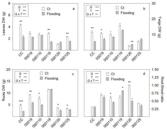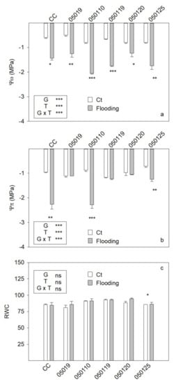 - Partiya, R.; Fotouhi Ghazvini, R.; Fifaei, R.; Ghasemnezhad, M. Response of Different Citrus Genotypes to Continuous Flooding Conditions. Int. J. Hortic. Sci. Technol. 2018, 5, 253–263. [Google Scholar] [CrossRef]