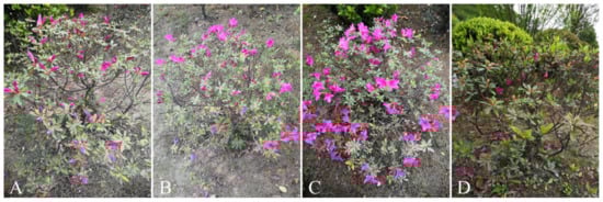 - Bowers, C.G. Rhododendrons and Azaleas: Their Origins, Cultivation and Development; Macmillan Co.: New York, NY, USA, 1960. [Google Scholar]