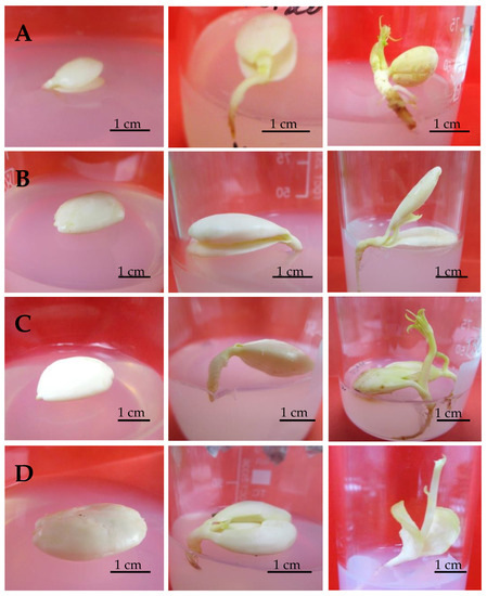 - Şan, B.; Yildirim, A.N.; Yildirim, F. An In Vitro Germination Technique for Some Stone Fruit Species: The Embryo Isolated from Cotyledons Successfully Germinated without Cold Pre-treatment of Seeds. HortScience 2014, 49, 294–296. [Google Scholar] [CrossRef]
