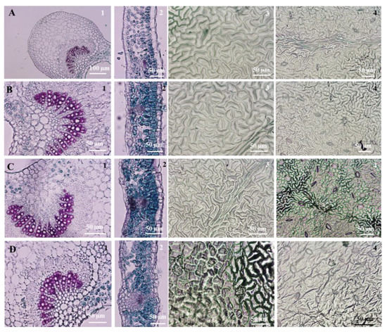 3.4. Leaf Micromorphological and Anatomical Characteristics