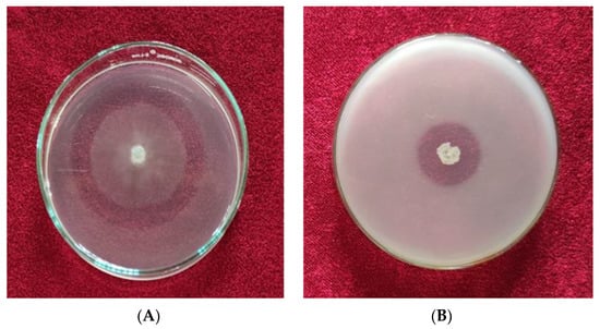 Phosphorus solubilization—(A) Holo zone by bioagent H10; (B) Holozone formed by Bioagent C9.
