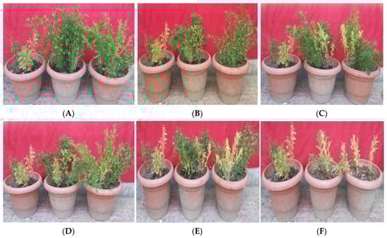 Plants showing wilt symptoms on leaves were categorized using a 1 to 5 scale [23]. Wherein grade value—1 = No symptoms, 2 = yellowing of basal leaves only, 3 = yellowing of 50% foliage, 4 = complete yellowing of foliage, 5 = whole plant or unilateral shoot is wilted.