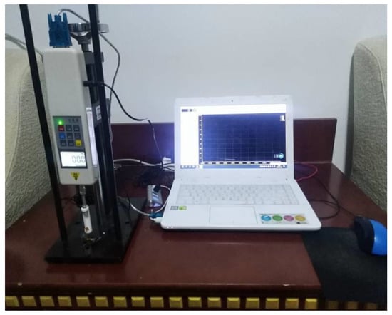 Based on the above results, the accurate quantitative maturity detection model of fruit could be established. To verify and compare the relationship between the prediction results of the model and the picking forces of fruit, the picking forces should be measured. The picking forces were measured by a digital display tensile force meter (range: 30 N, accuracy: 0.01 N), and the measuring device of picking forces is shown in Figure 8.
