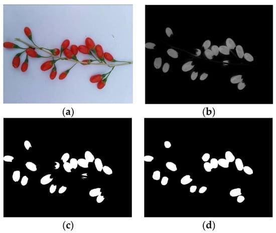 Lycium barbarum L. (L. barbarum) is a solanaceae Lycium indefinite inflorescence deciduous shrub and its ripe fruit [1,2,3], commonly known as Goji, has been reported to contain health-promoting bioactive components, such as the polysaccharides, zeaxanthin, and antioxidant compounds [4]. Both in vitro and in vivo studies of L. barbarum have demonstrated its anti-inflammation, anti-aging, anti-hypertensive, anti-hyperglycemic, anti-tumoral, and anti-Alzheimer effects, as well as alleviating mood disturbances during the rehabilitation of cough syrup abusers [5,6]. For centuries, the mechanized harvesting of L. barbarum has been a difficult problem [7]. Therefore, the fruit are normally harvested manually, which results in the low efficiency and high cost. With the continuous expansion of L. barbarum acreage, labor for harvesting fruit is increasingly scarce. The harvesting becomes the bottleneck limiting the development of the L. barbarum industry [3]. At present, scholars in China and abroad are producing prototypes of L. barbarum harvesting machines [3,8,9,10,11,12,13,14,15]. With the popularization of the standardized planting mode of L. barbarum, the large-scale manor planting mode of L. barbarum has become the development trend and the machine harvesting of fruit over plants has become suitable for the mechanized harvesting of this planting mode. For this method however, it is important to accurately predict the optimal harvest maturity of fruits (as is the case for, e.g., nectarines) [16]. Therefore, determining whether fruit are suitable for harvesting or not is an urgent problem. Furthermore, the accurate quantitative maturity detection of fruit will also be helpful to improve the quality of post-harvest processing, such as sorting and grading.