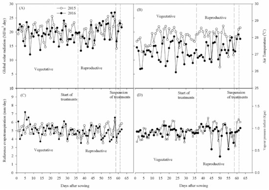 Figure 1). The average Tair values were 28.0 and 27.2 °C for 2015 and 2016, respectively. The average ET