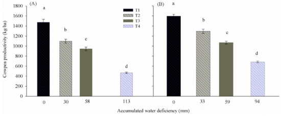 The lower productivity was due to the reduced soil water supply. Bastos et al. [