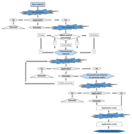 Decision tree for testing raw materials as potential components for growing media.