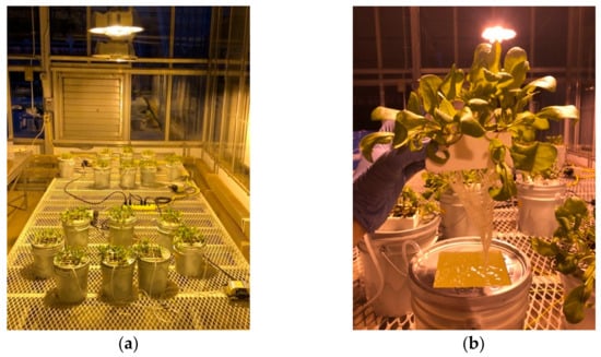 Our experiment was conducted in a glass greenhouse at Cornell University in Ithaca, New York (42° N and a longitude of 76° W). Trial 1 occurred between 5 November 2019 and 23 November 2019. Trial 2 occurred between 2 December 2019 and 21 December 2019. Trial 3 occurred between 27 January 2020 and 17 February 2020.