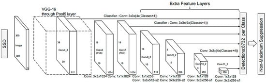 35]. The algorithm changes the two fully connected layers of the VGG-16 network structure into convolution layers, and adds four convolution layers to construct the network structure. The specific network structure is shown in
