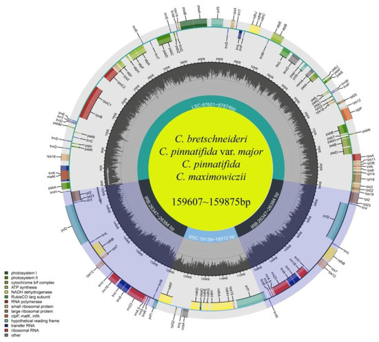 The annotated chloroplast genomes of C. bretschnederi, C. pinnatifida, C. pinnatifida var. major and C. maximowiczii have been deposited in the NCBI (https://www.ncbi.nlm.nih.gov, accessed on 1 July 2021) GenBank with the accession numbers MW963339, MZ494514, MZ494513 and MZ494512.