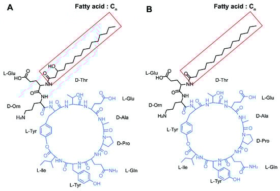- Balleza, D.; Alessandrini, A.; Beltran Garcia, M.J. Role of lipid composition, physicochemical interactions, and membrane mechanics in the molecular actions of microbial cyclic lipopeptides. J. Membrane Biol. 2019, 252, 131–157. [Google Scholar] [CrossRef]