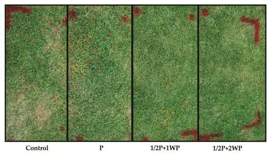- Kim, Y.S.; Lee, J.P.; Chang, S.W.; Lee, G.J. Synergistic suppression of bio-sulfur of pencycuron on large patch disease caused by Rhizoctonia solani AG 2-2 (IV) in Zoysia japonica. Weed Turf. Sci. 2019, 8, 355–364. [Google Scholar] [CrossRef]