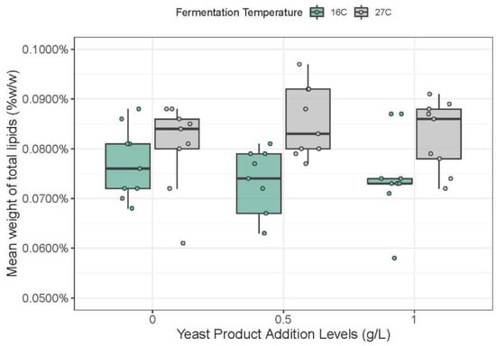 | Fermentation Temperature (°C) | 16 | 27 | p-Value (α = 0.05) | ||||||