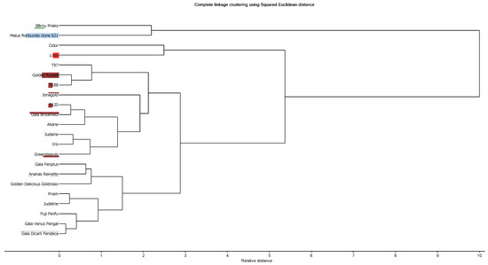 Hierarchical clustering diagram for the 22 studied apple genotypes.